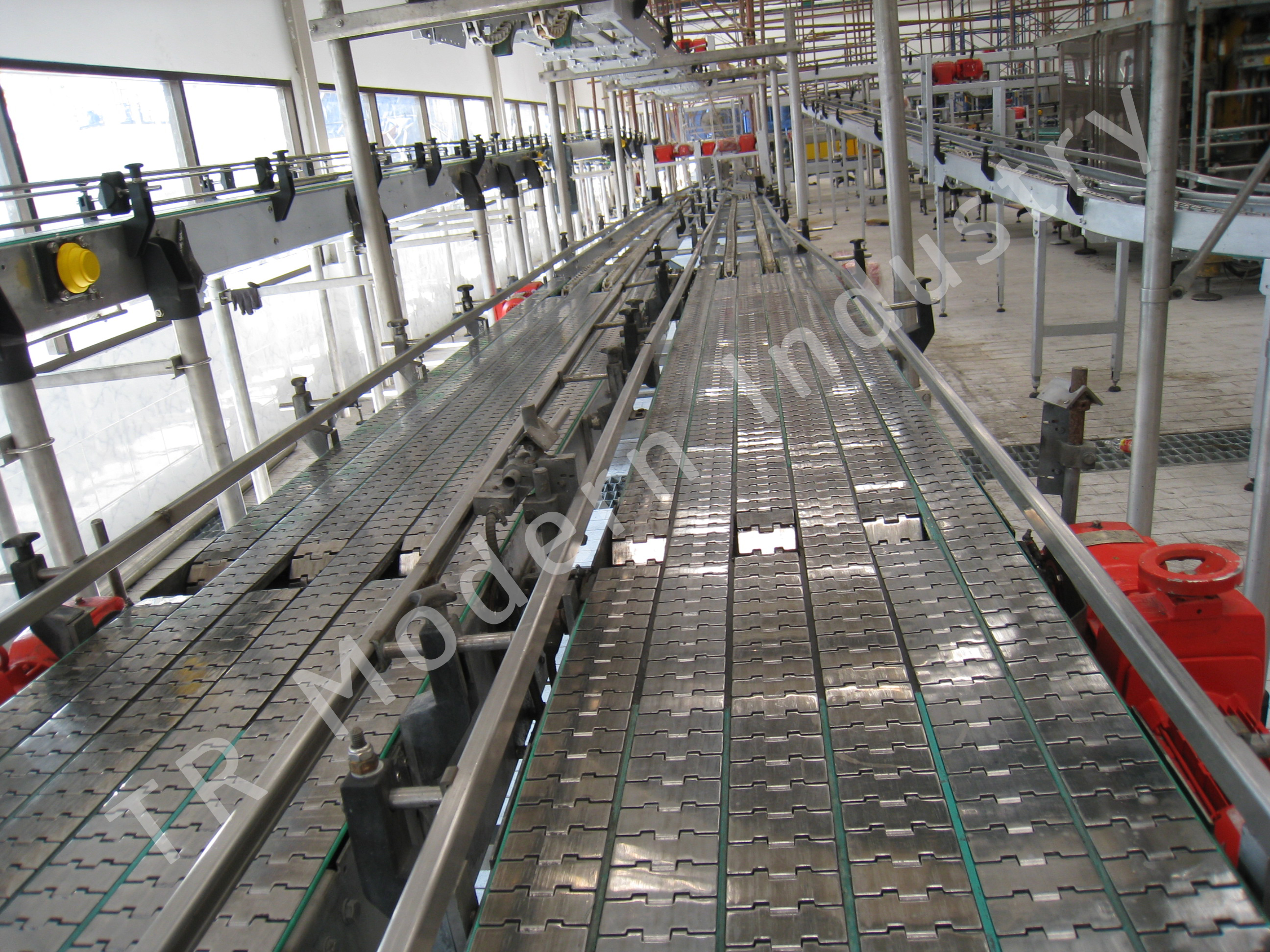 9. Slat Chain Conveyor: ระบบลำเลียงที่ใช้สายพานล้อนหรือลูกโซ่ในการลำเลียงสินค้าหรือวัตถุต่าง ๆ